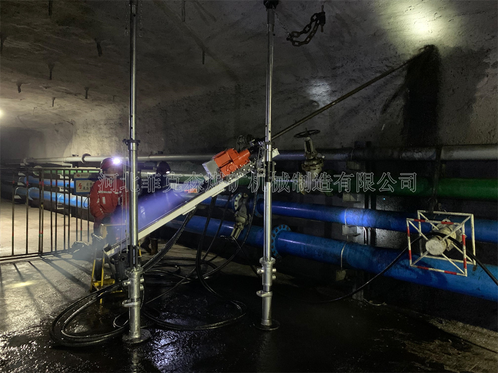河北菲克森生產(chǎn)的氣動(dòng)架柱式鉆機(jī)是一款全風(fēng)運(yùn)行的勘探設(shè)備,以壓縮空氣為動(dòng)力的煤礦井下鉆孔、探放設(shè)備。由主機(jī)和立柱兩部分組成,鉆機(jī)由高壓膠管直接與煤礦井下高壓氣體管道連接,結(jié)構(gòu)簡(jiǎn)單,搬運(yùn)使用輕松。同時(shí)氣動(dòng)式架柱式鉆機(jī)的使用范圍很廣泛,除了煤礦探放孔、抽采瓦斯煤體注水、卸放壓力孔、巷道貫通超前孔,也適合各種其他工程孔、取芯孔等有特殊要求的地質(zhì)勘探。